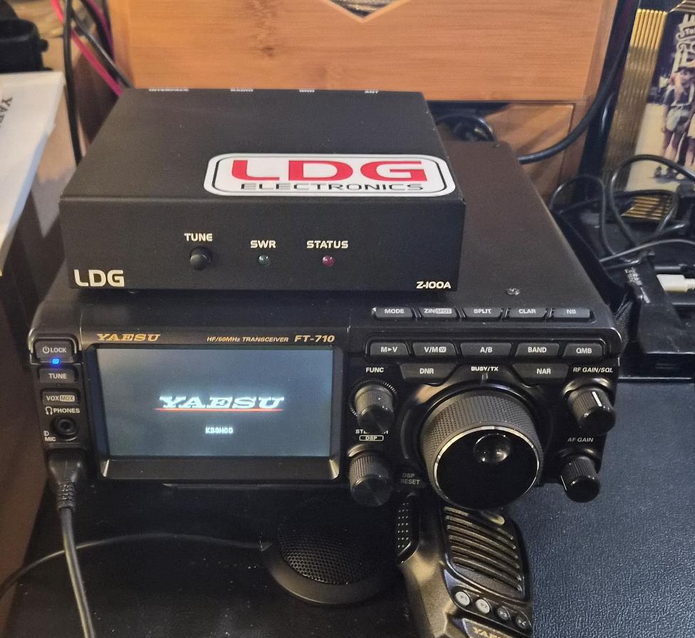 | This next picture is a picture of my radio setup, I have a Yeasu FT-710 connected to an LDG 100A antenna tuner. | ![]() |